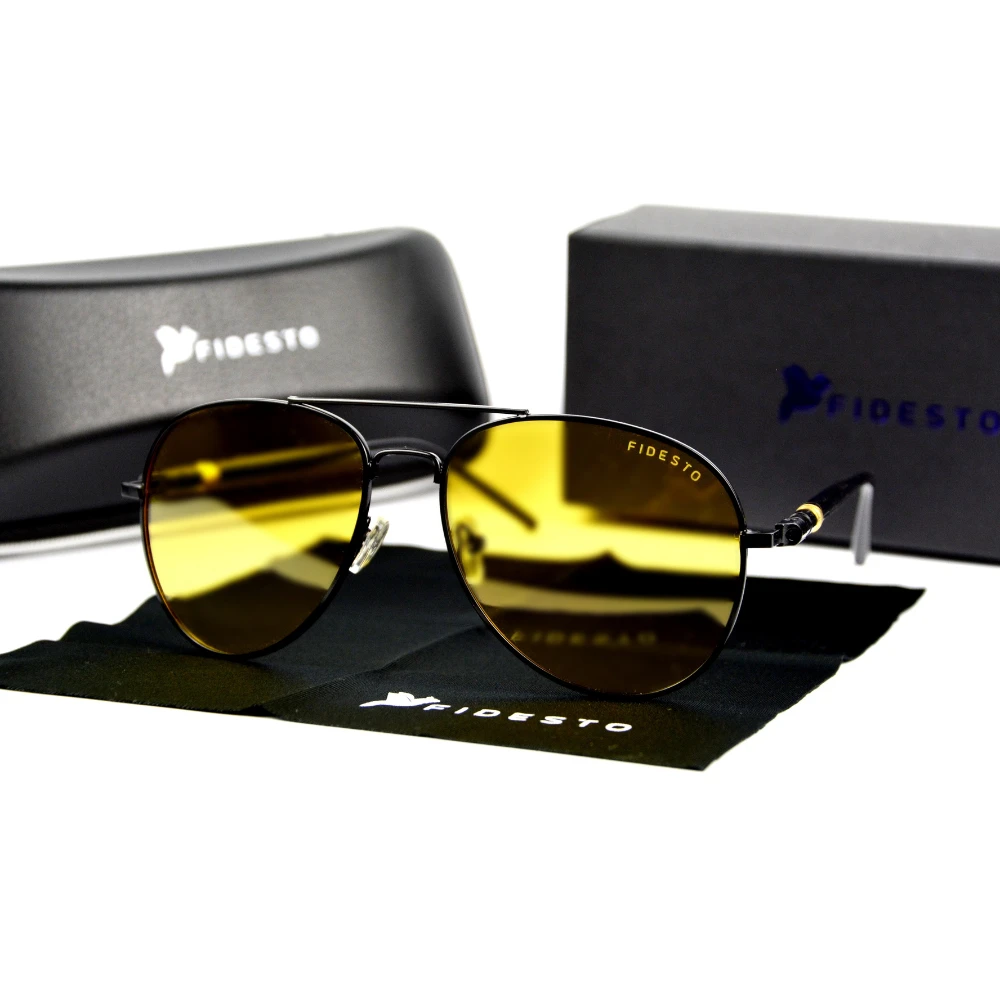 Okulary Polaryzacyjne PREMIUM "Night Rider" Fidesto®, do jazdy nocnej w czarnej wersji kolorystycznej.